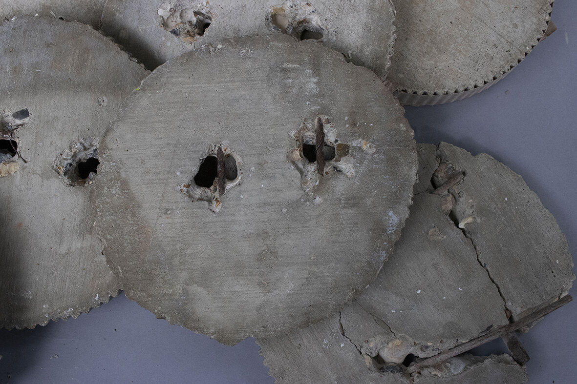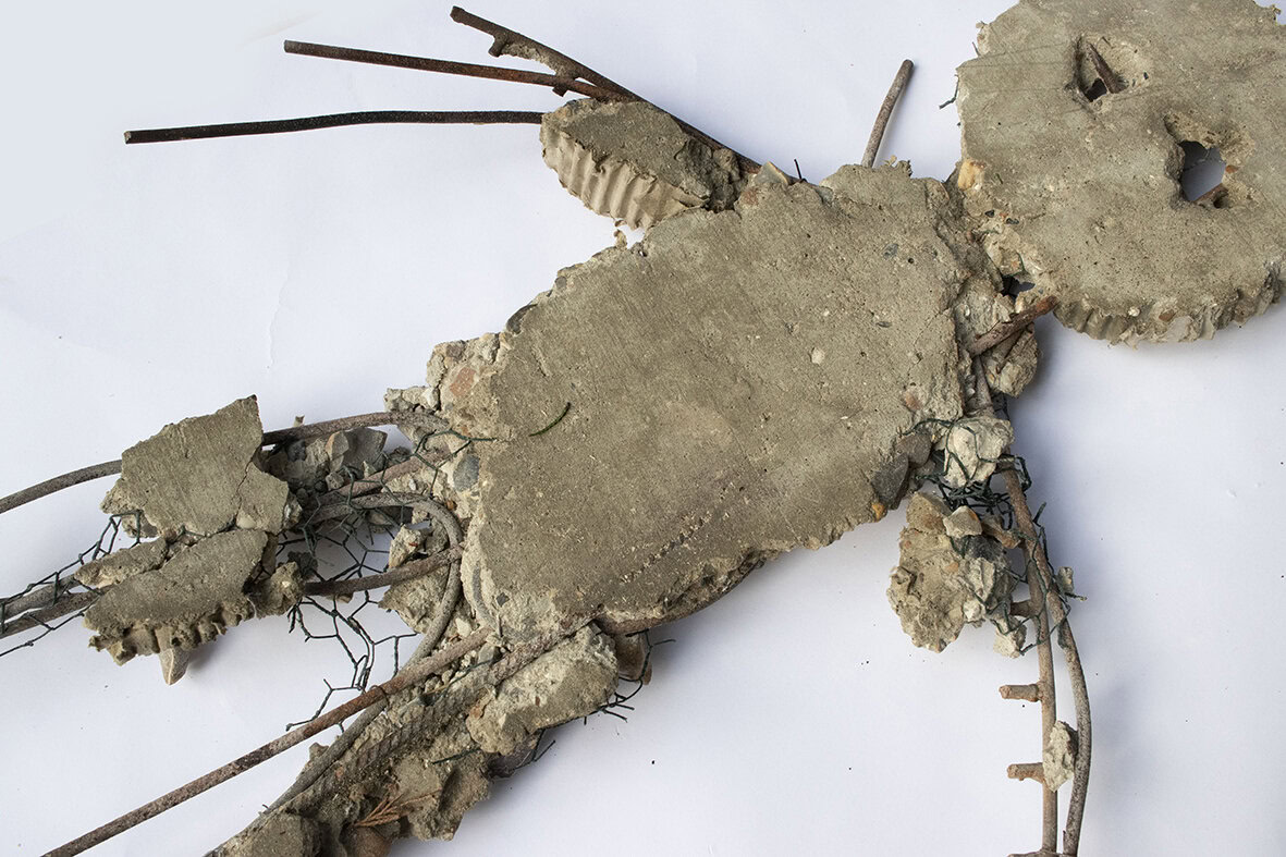 Heads, Warchild series, 2025, concrete and steel reinforcing bars (after Fallen Leaves)